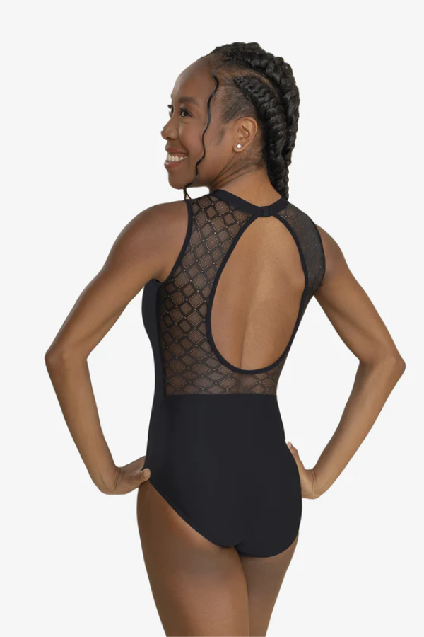 High neck asymmetrical dance leotard. Stylish and bold for auditions, performance or even for dance class